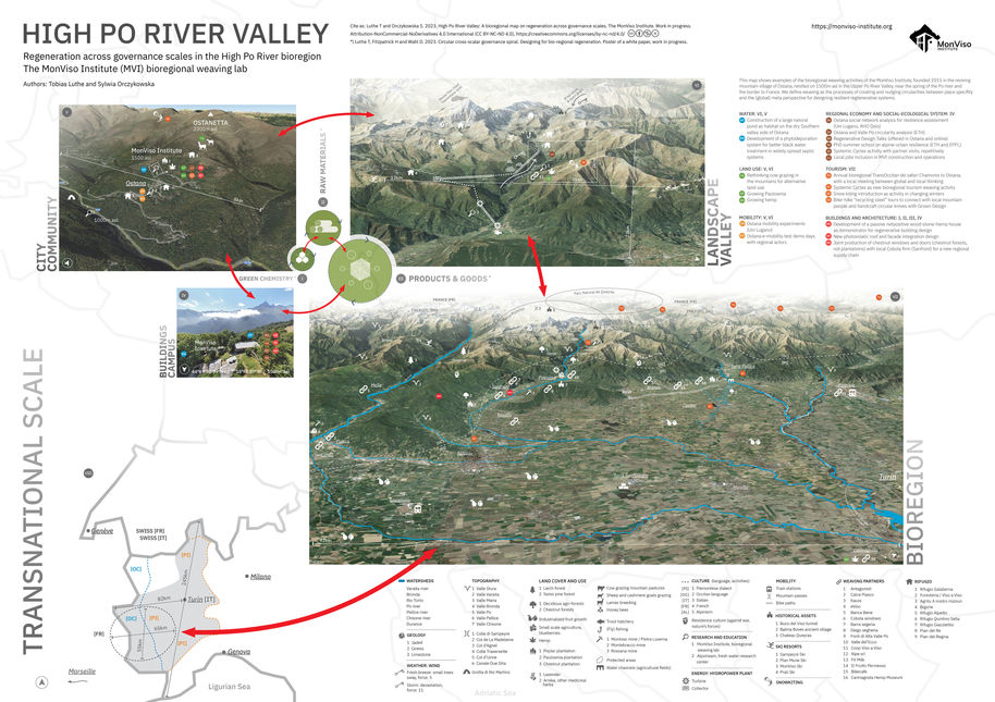 Map design on regeneration across governance scales and bioregional weaving perspectives for a living systems lab MonViso Institute, Ostana, Italy and ETH Zurich, Systemic Design Labs, MAS executive programme in Regenerative Systems, Zurich, Switzerland