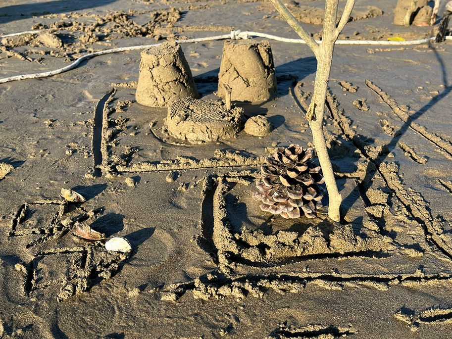 Participatory land art project realised for Bioregional Sensing unconference, initiative of Designing Resilient Regenerative Systems (DRRS) and MonViso Institute, Ostana, Italy in partnership with Camping Ca'Savio, Venice Lagoon, Italy